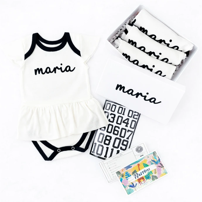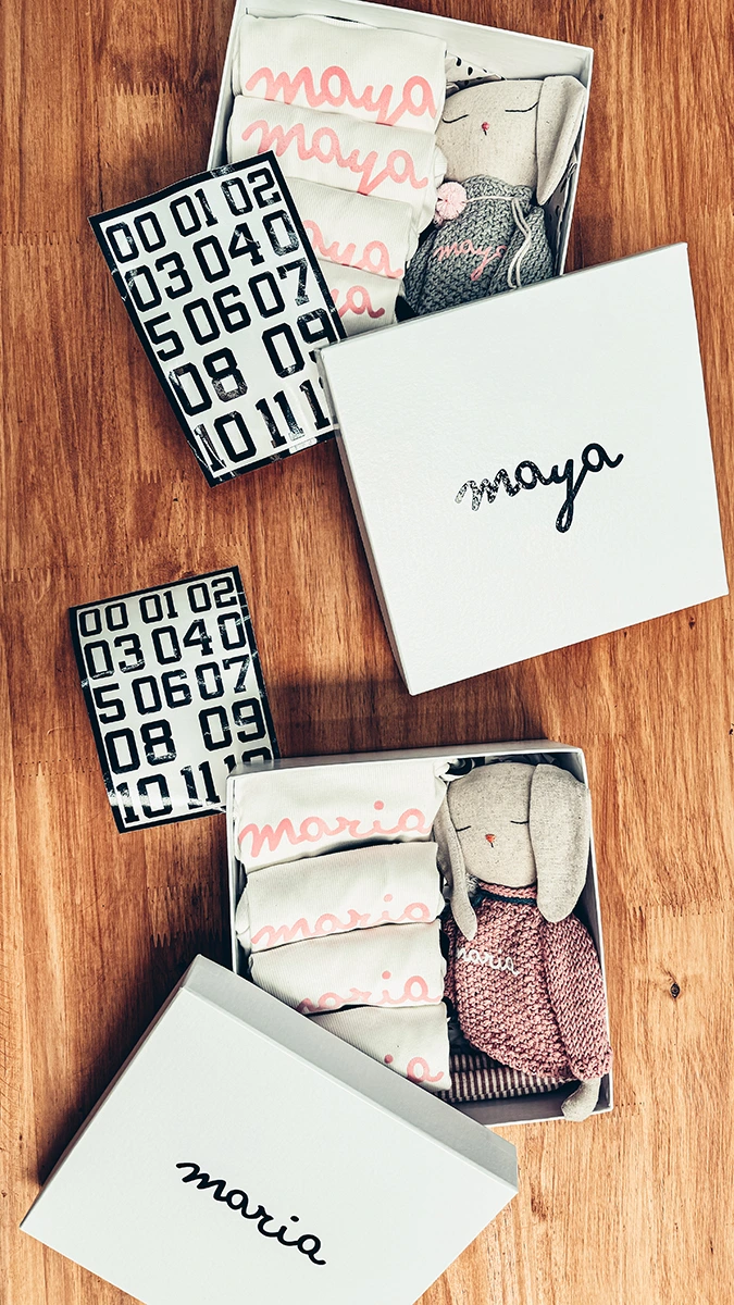 Todas as peças serão personalizadas com o nome ou apelido indicados no campo acima e no estilo de letra desejado.