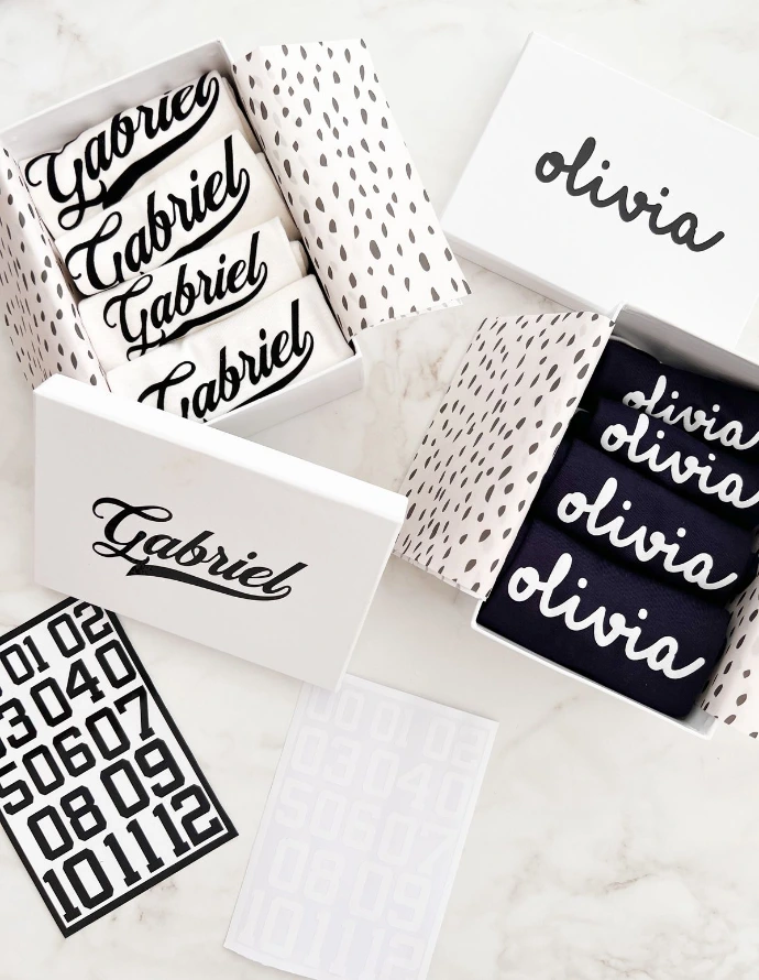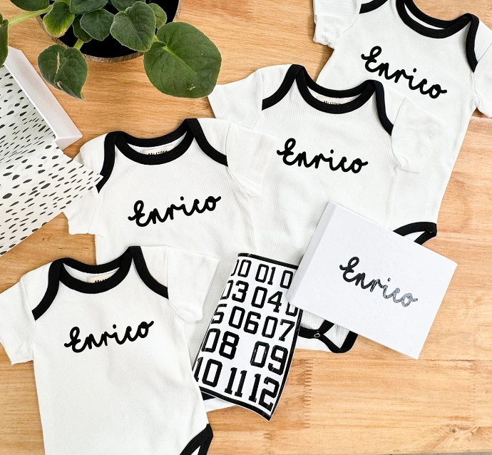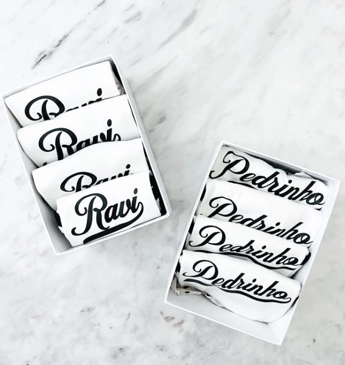 Todas as peças serão personalizadas com o nome ou apelido indicados no campo acima e no estilo de letra desejado.