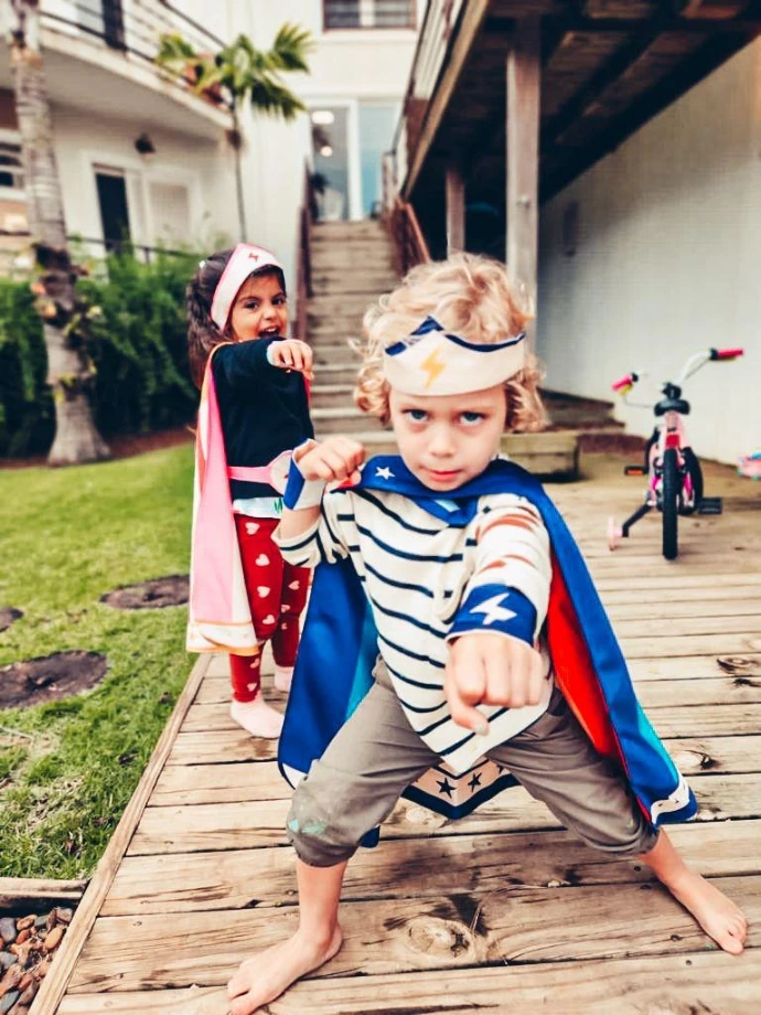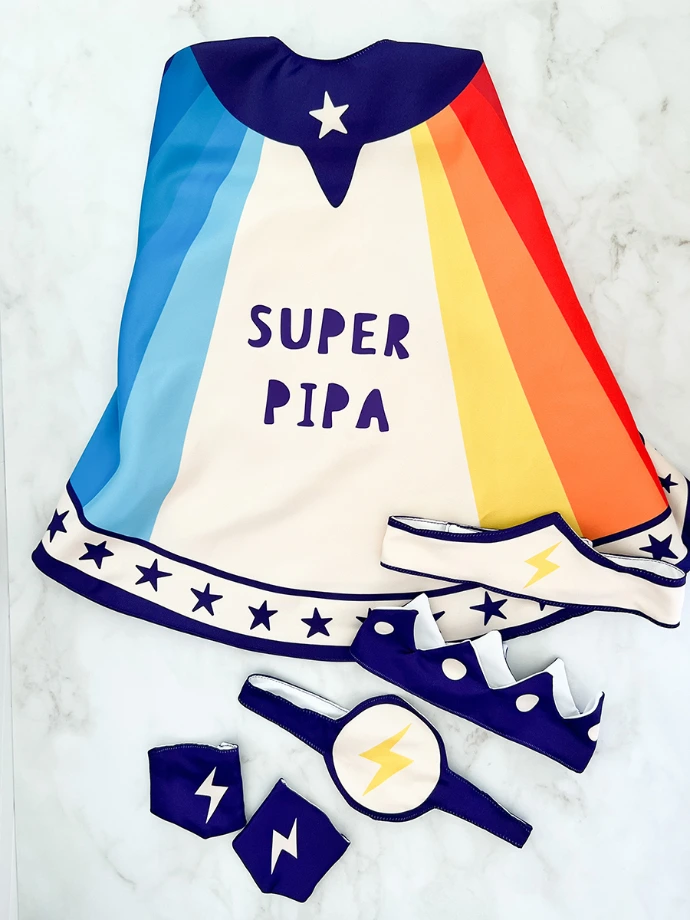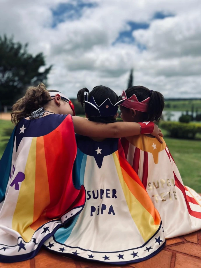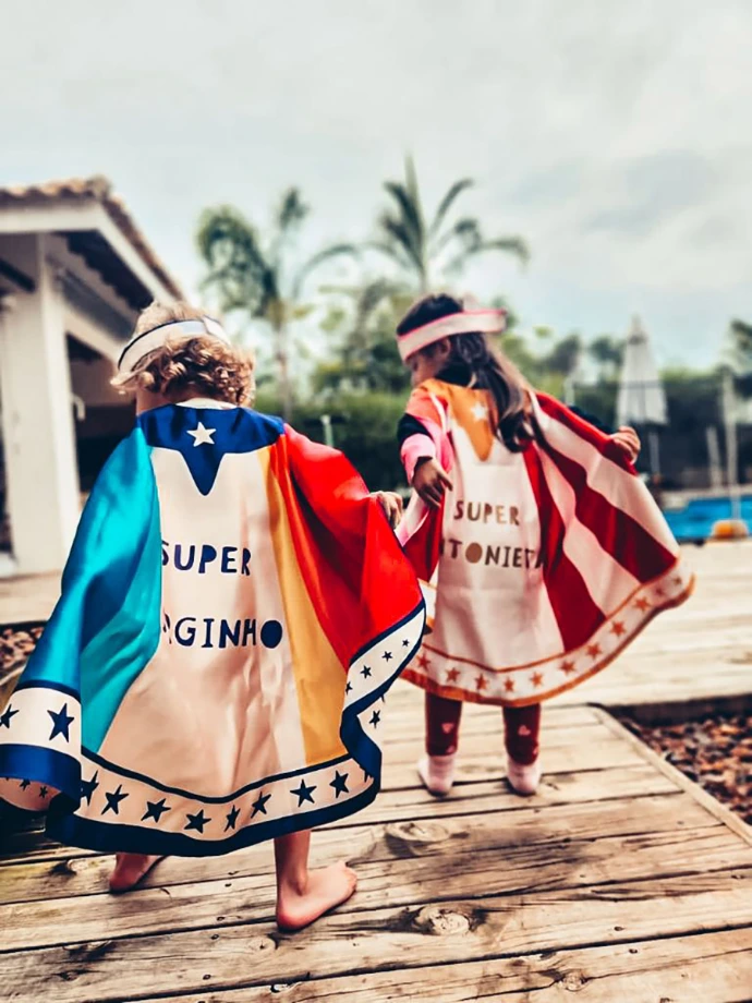 Em uma face, a inicial da criança. Do outro, vai Super + o nome ou apelido que você quiser dar para o seu novo Super Herói preferido!