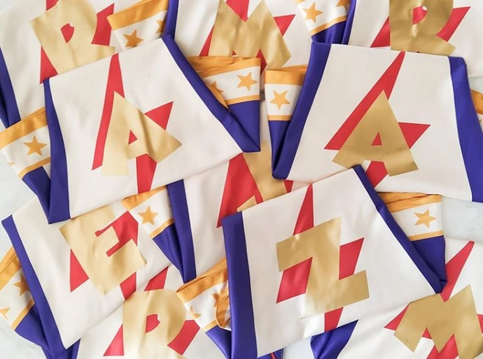 Em uma face, a inicial da criança. Do outro, vai Super + o nome ou apelido que você quiser dar para o seu novo Super Herói preferido!