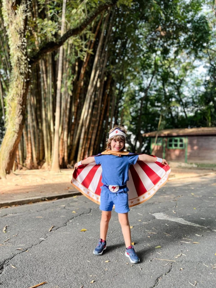 Apesar da idade sugerida, as peças possuem fecho com regulagem de velcro, se adaptando para crianças tanto um pouco maiores quanto menores da idade sugerida.
